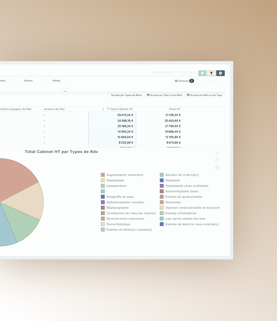 Suivi des indicateurs clés en temps réel : CA par équipe et par période, analyse des soins recruteurs, top des ventes, taux d’occupation, gestion des stocks.
